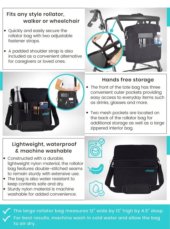 | Compatible With | Rollators, wheelchairs, zimmer frames, walkers |